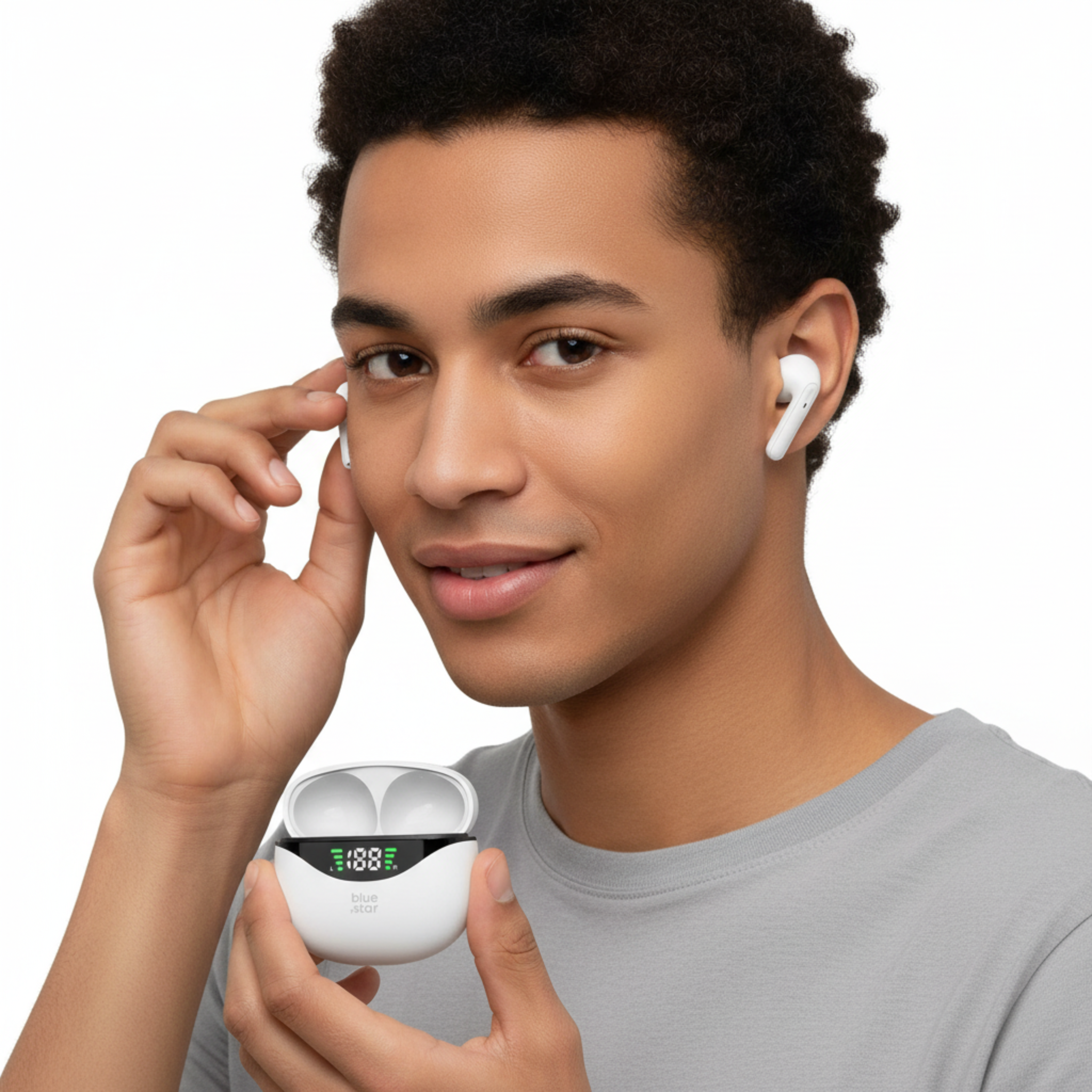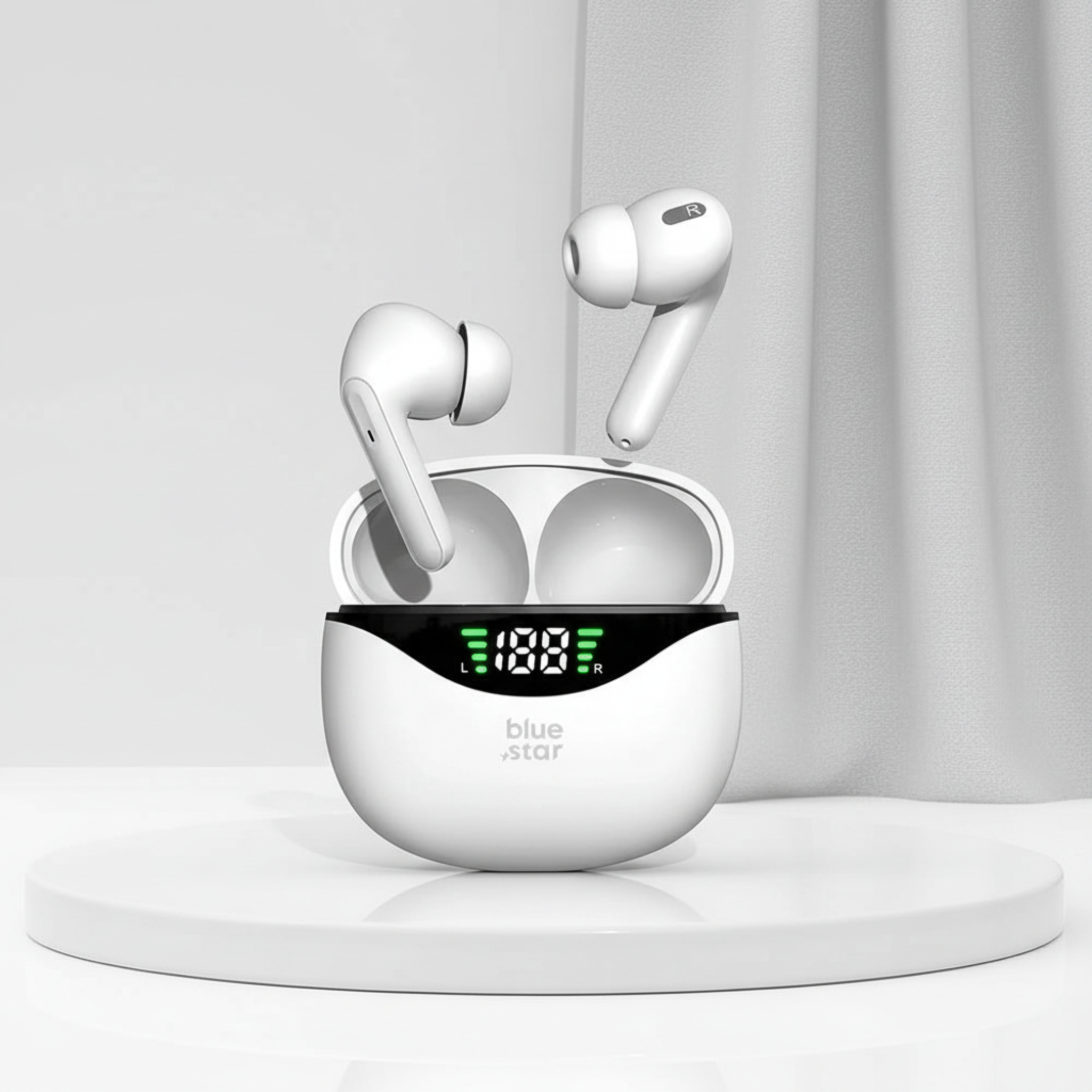 Los auriculares inalámbricos BLUE STAR TWS T60 son una solución moderna para los amantes de la música que valoran la comodidad y la calidad de sonido. Utilizan tecnología Bluetooth 5.4, que garantiza una conexión estable y una transmisión de audio fluida con dispositivos compatibles dentro de un rango de hasta 12 metros. Una pantalla digital indica el nivel de carga tanto de los auriculares como del estuche.